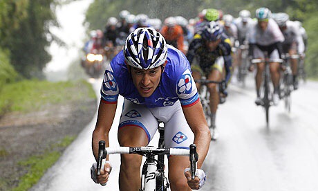 France’s Jeremy Roy starts a breakaway in the rain of Stage 4 of the 2011 Tour de France. Photograph: Joel Saget/AFP/Getty Images
